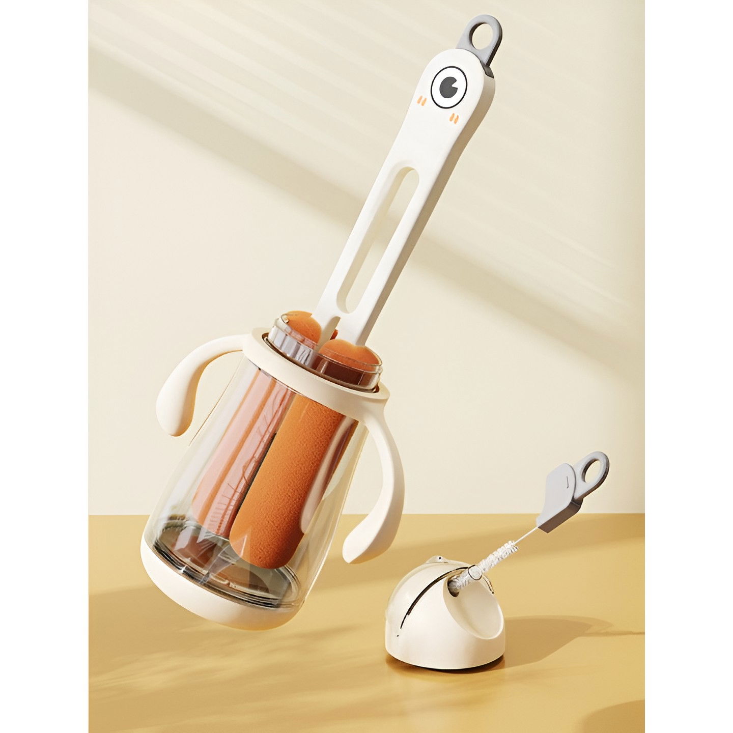 Perie de Curatat Pahare, Cani, Sticle, Flippy, cu Maner Lung si Burete, Accesorii pentru Spalarea Paielor si Capacelor, usor de Agatat, 27.5x11.4x6cm, Alb