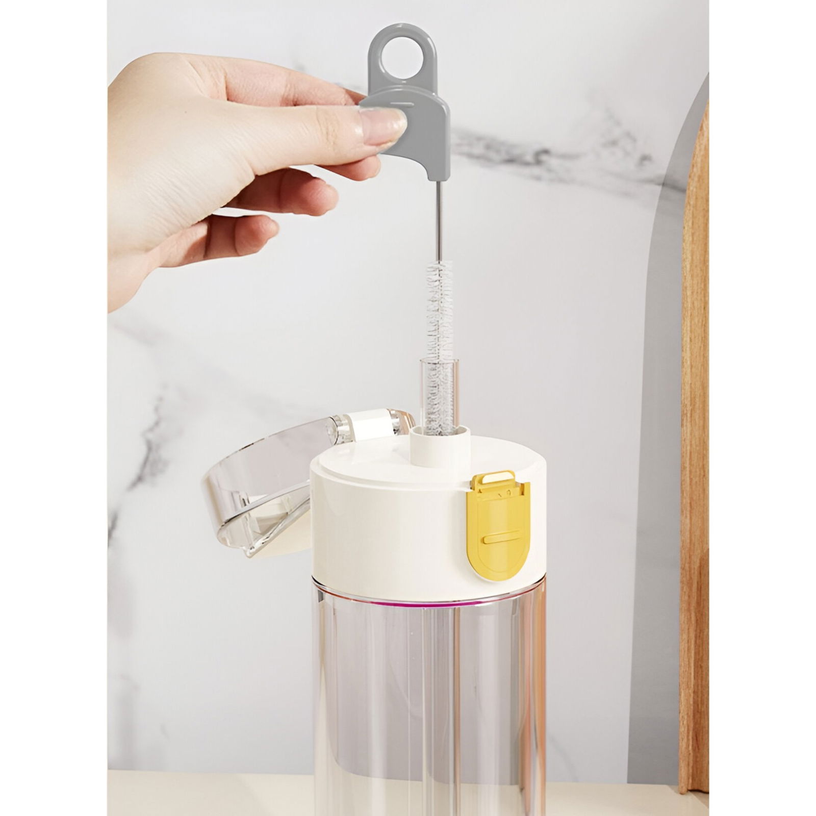 - Curăță eficient o varietate de cupe cu patru capete de perie: cap de perie din burete dens, perie de cupe din silicon, perie subțire de paie și perie de sârmă împletită ascunsă.