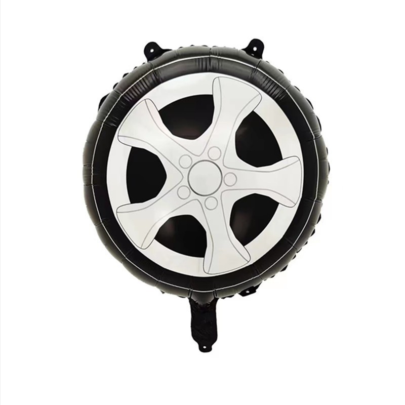 Set 2 Baloane din Folie Metalizata, Flippy, Figurine Roti, Model Masini, 75-80 cm cm, Ambalaj Individual, Pai Inclus, Umflare cu Aer sau Heliu, Negru