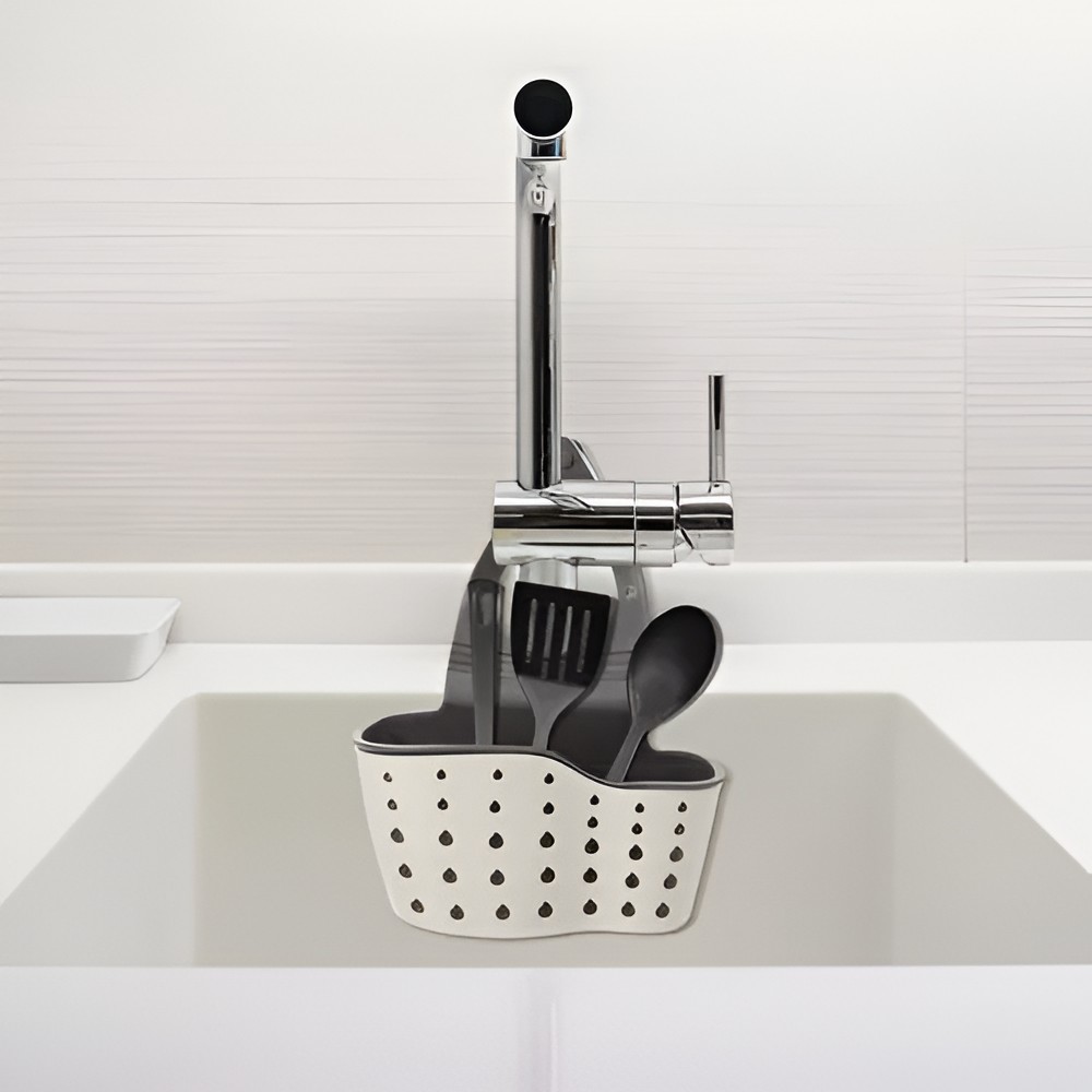 Dimensiunile sale compacte (15x5x20cm) il fac potrivit chiar si pentru spatiile mici, fara a aglomera blatul sau marginea chiuvetei. Este suficient de incapator pentru a gazdui simultan un burete si o laveta sau o perie de vase, iar forma sa curbata ofera stabilitate si echilibru.
