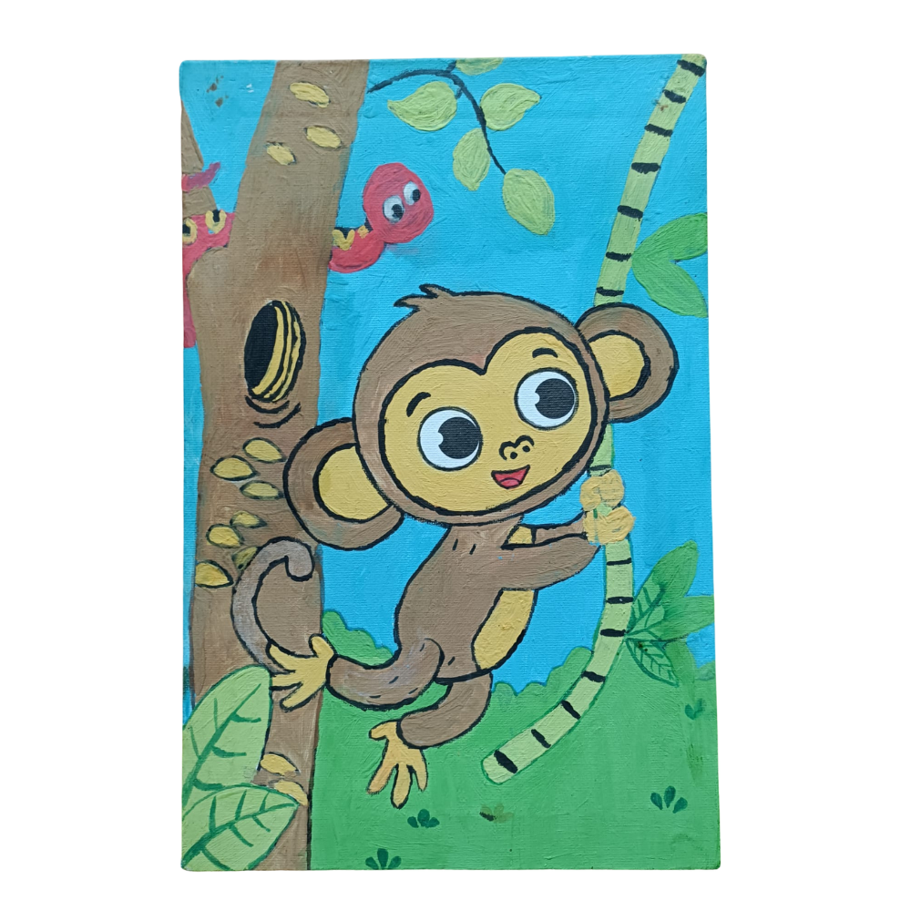 picteaza simpatica maimutica cu vopselele incluse in set