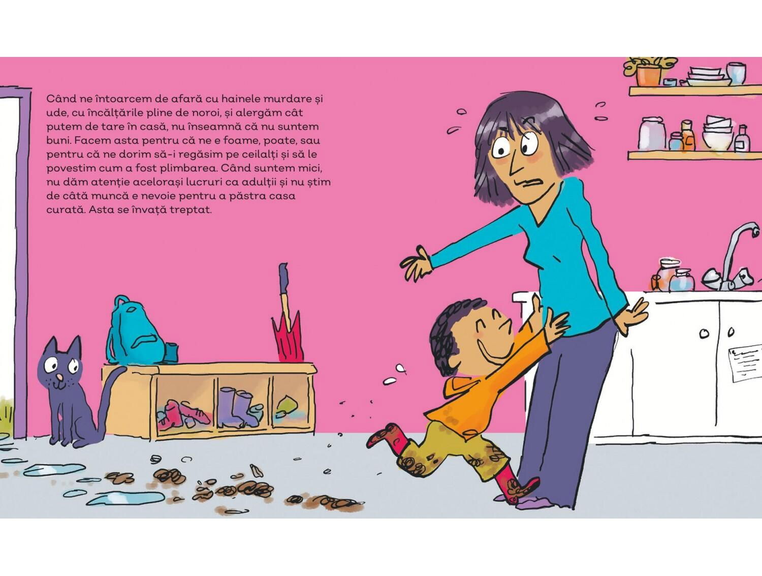 Personajul principal din carte explica situatii din viata cu care se poate confrunta un copil, situatii in care ajunge sa fie rautacios fara sa vrea. (cand imparte o jucarie cu un alt copil, cand se intoarce de la joaca cu hainele murdare si murdare).