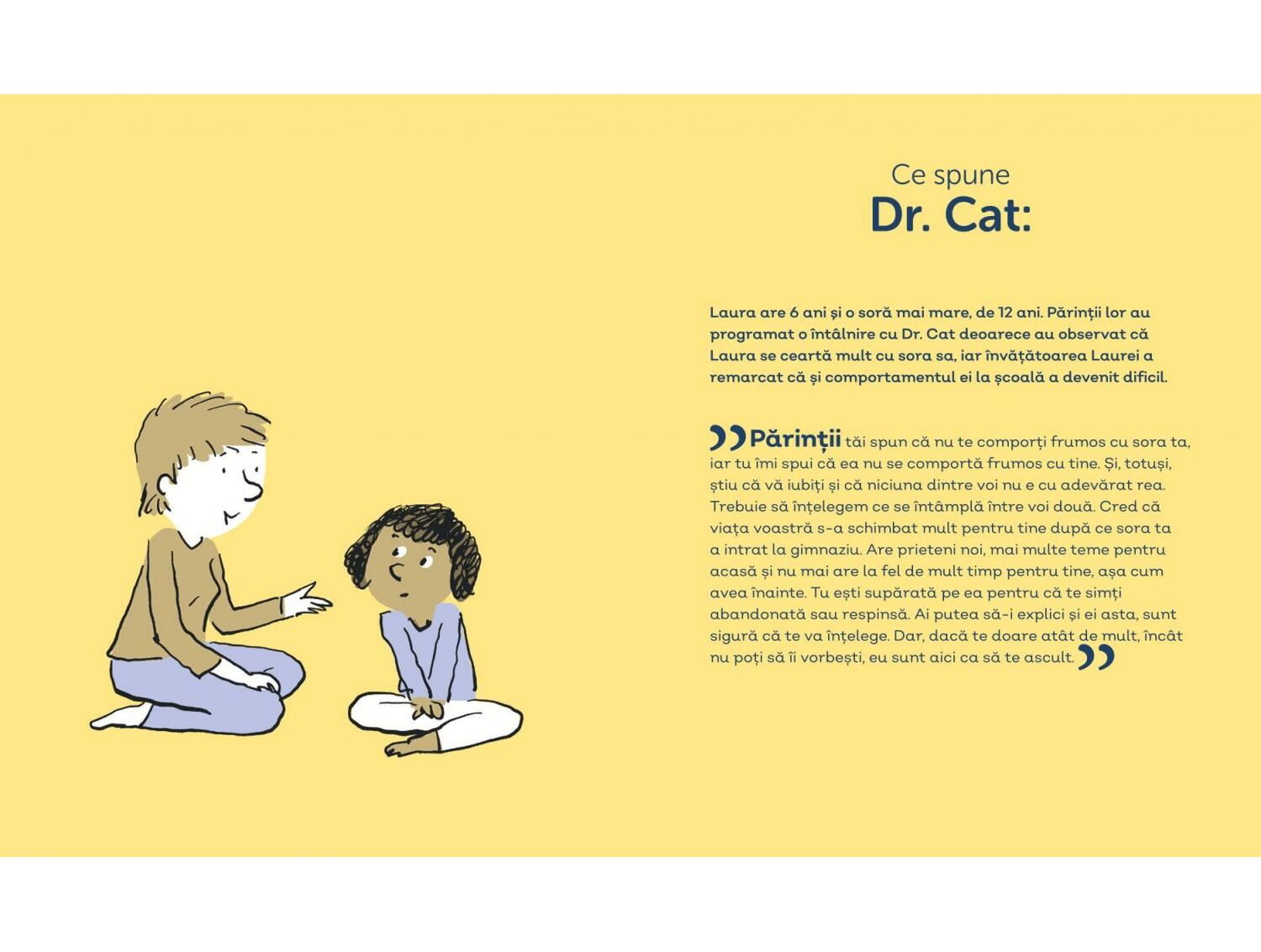 Catherine Dolto, insotita de editoarea sa complice, Colline Faure-Poirée, işi transmite cunostintele unice referitoare la educatia copiilor si isi face aparitia la finalul cartii in persoana doctorului Cat, adresandu-li-se celor mici de parca ar fi fata in fata, in cabinetul sau. Ea ştie sa puna in cuvinte trairile copiilor, ce anume ii agita, ii nemultumeste si ii nelinisteste pe aceştia. Şi are o vorba preferata: „Atunci cand intelegem mai bine, crestem mai bine”.