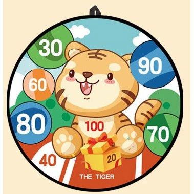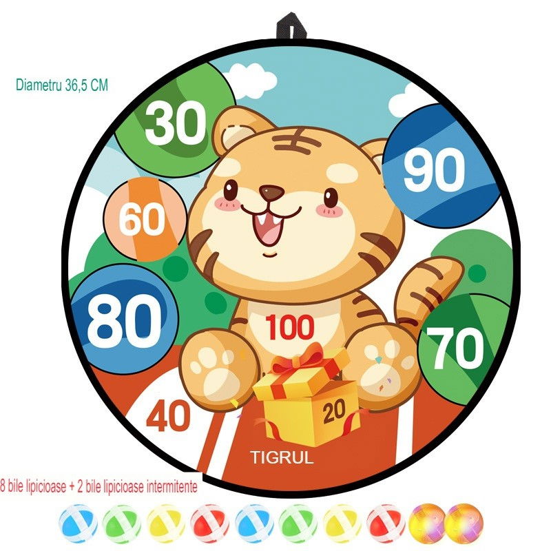 Joc Darts Flippy pentru Copii, Placa Pliabila 36.5 cm, 8 Mingii Velcro/Scai Simple, 2 Mingii Luminoase, Model Tigru, Portocaliu