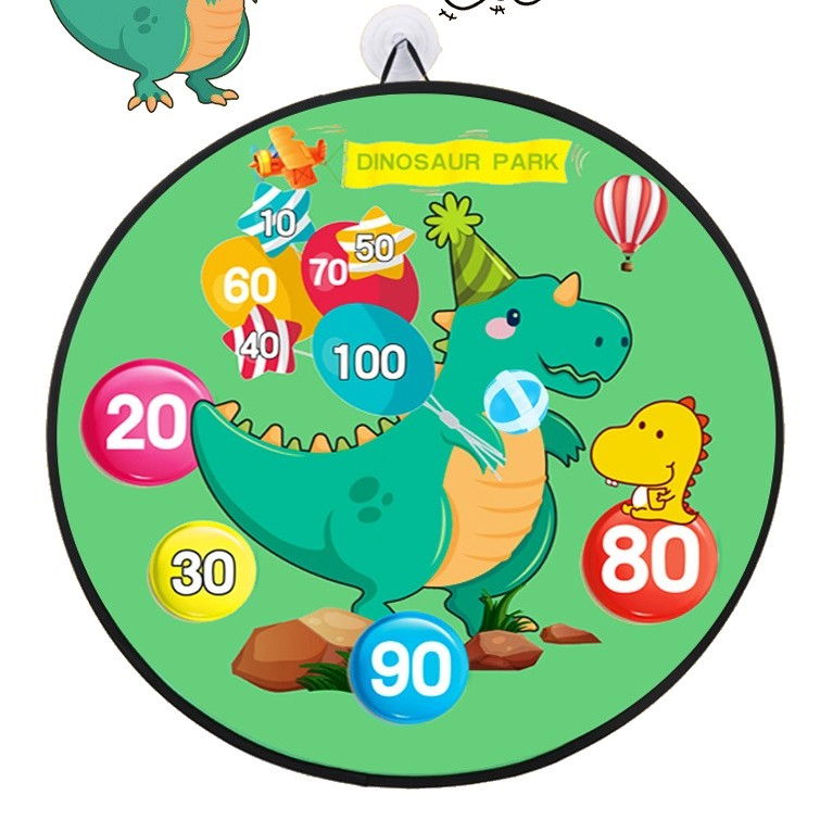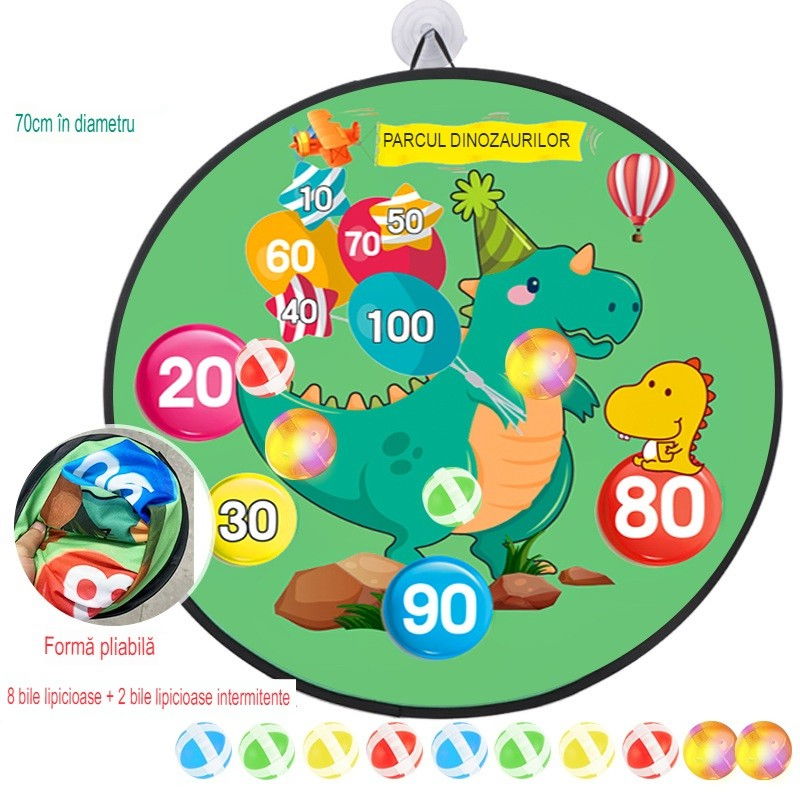 Joc Darts Flippy pentru Copii, Placa Pliabila 70 cm, 8 Mingii Velcro/Scai Simple, 2 Mingii Luminoase, Model Dinozaur Park, Verde