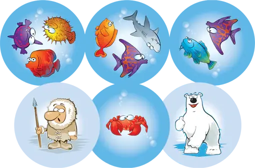Carduri de joc colorate cu ilustratii arctice (pesti, ursi polari etc.)