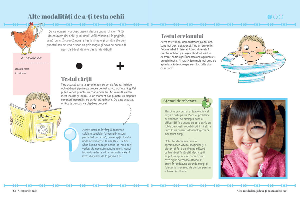 In Capitolul 1 vei intelege cum functioneaza simturile tale; cum preiau informatii ochii, urechile, nasul, gura si pielea ta, astfel incat sa poti descoperi lumea care te inconjoara.