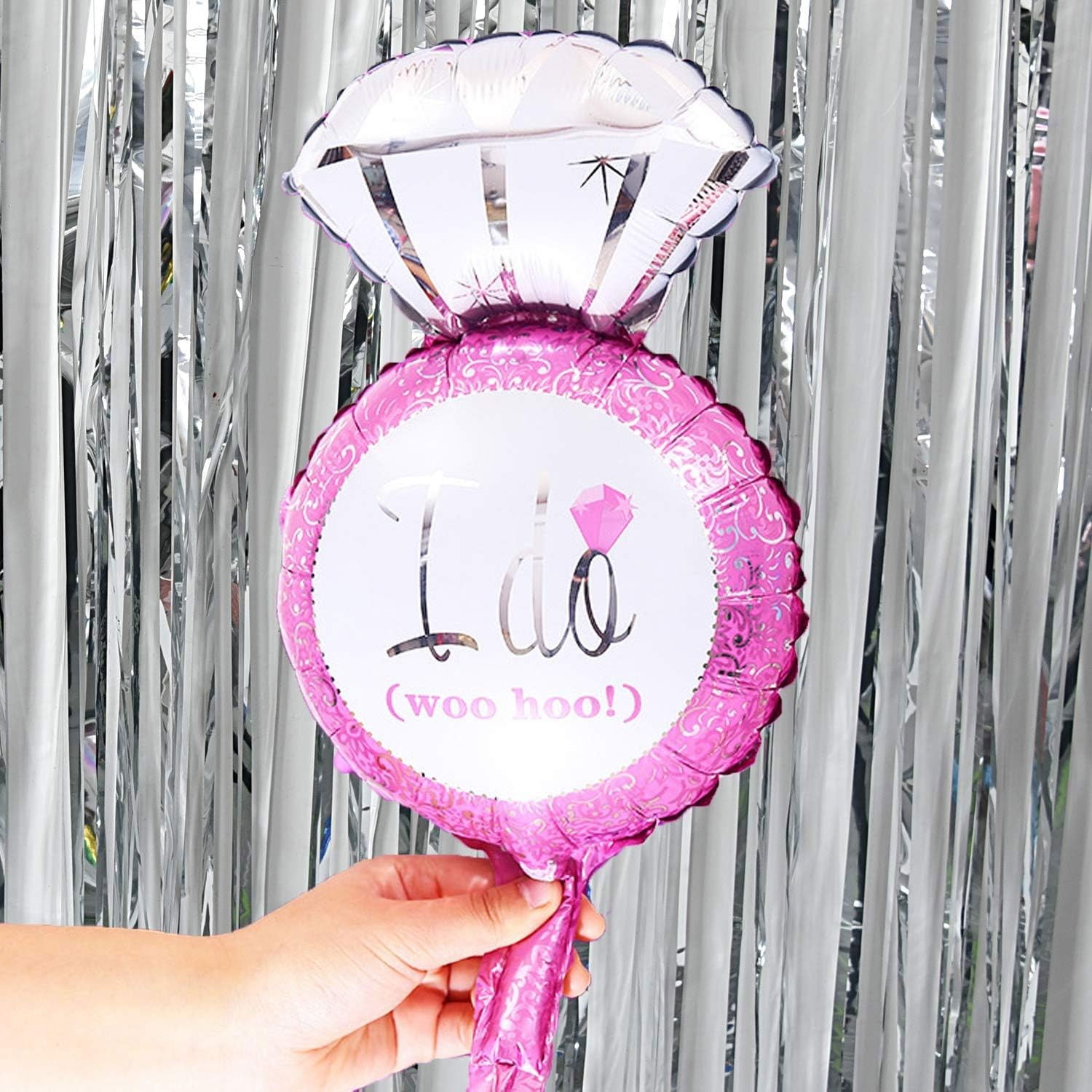 Balon din Folie Metalizata, Flippy, Mini Figurine Nunta, Model Inel de Logodna, Tematica Cerere in Casatorie, 46x23 cm, Ambalaj Individual, Pai Inclus, Umflare cu Aer sau Heliu, Roz