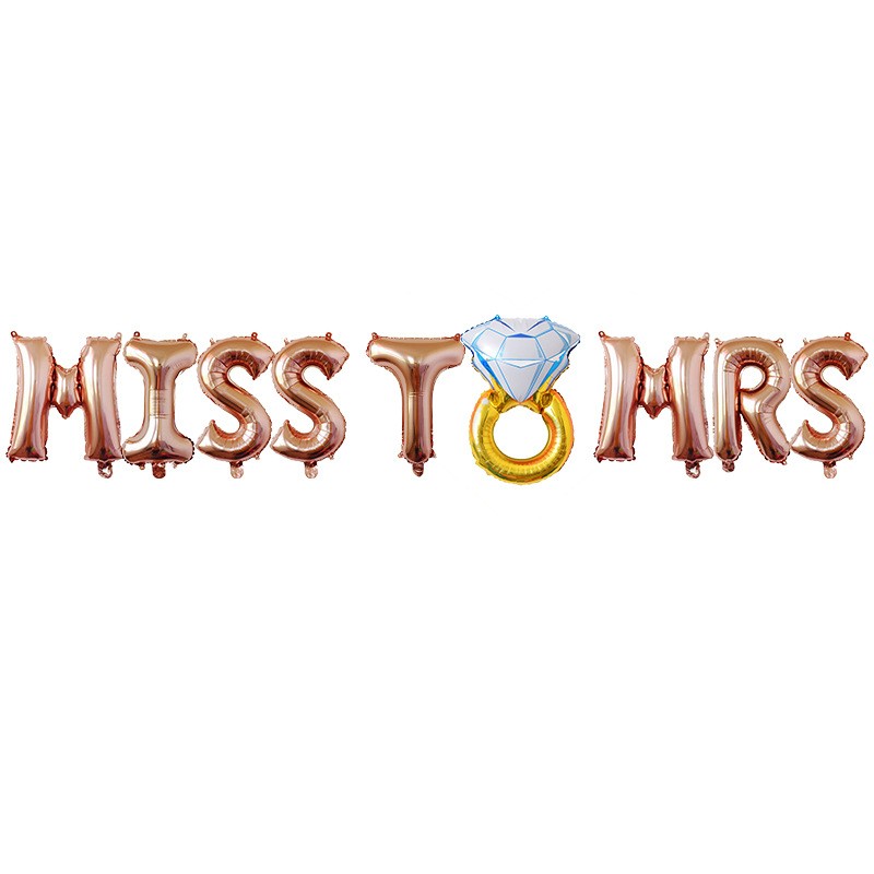Set Baloane din Folie Metalizata, Flippy, Model Miss to Mrs cu Inel de Logodna, Litere de 40 cm, Tema Iubire, Baloane Party, Ambalaj Individual, Pai Inclus, Umflare cu Aer sau Heliu, Roz