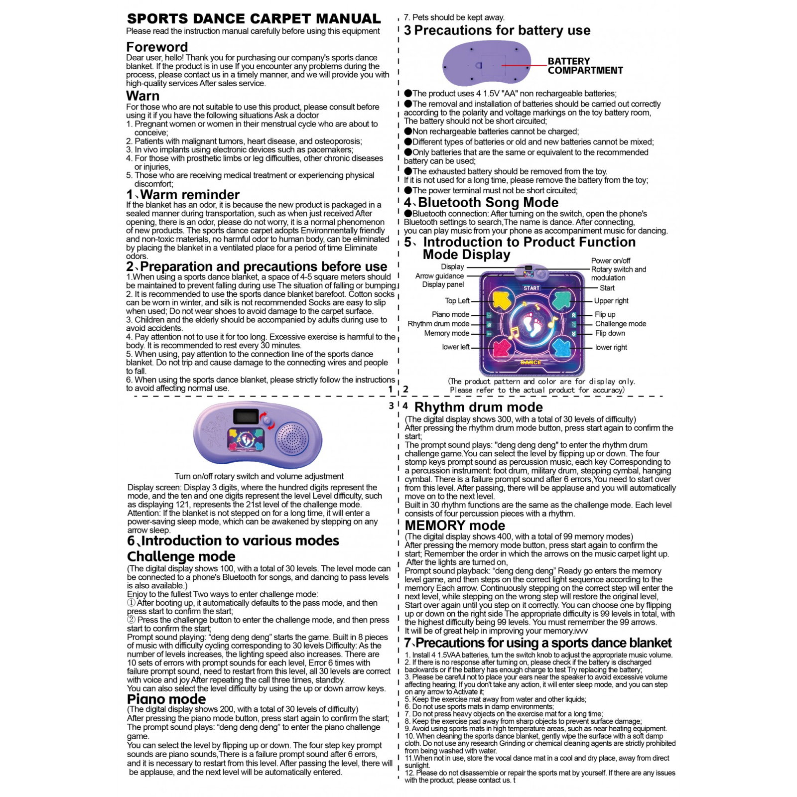 Funcții: Difuzor, display, ON/OFF, pliabil, 4 moduri de joc