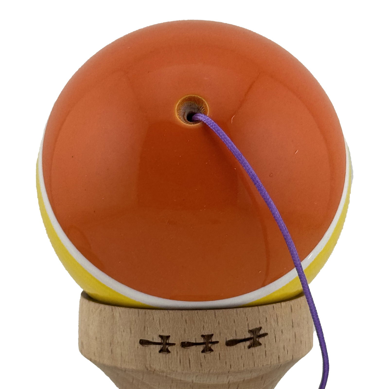 Kendama X Originala, Profesionala, Flippy, Big Cups V2, Super Sticky Legendary Cupe Mari, Rulment Metalic cu Ata 55 cm, Portocaliu/Galben/Alb