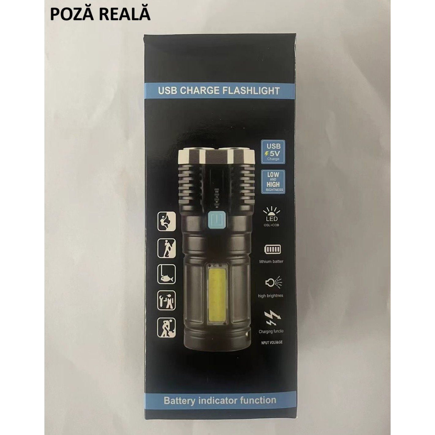 Lanterna are diode de control pentru a monitoriza starea de încărcare a bateriei.