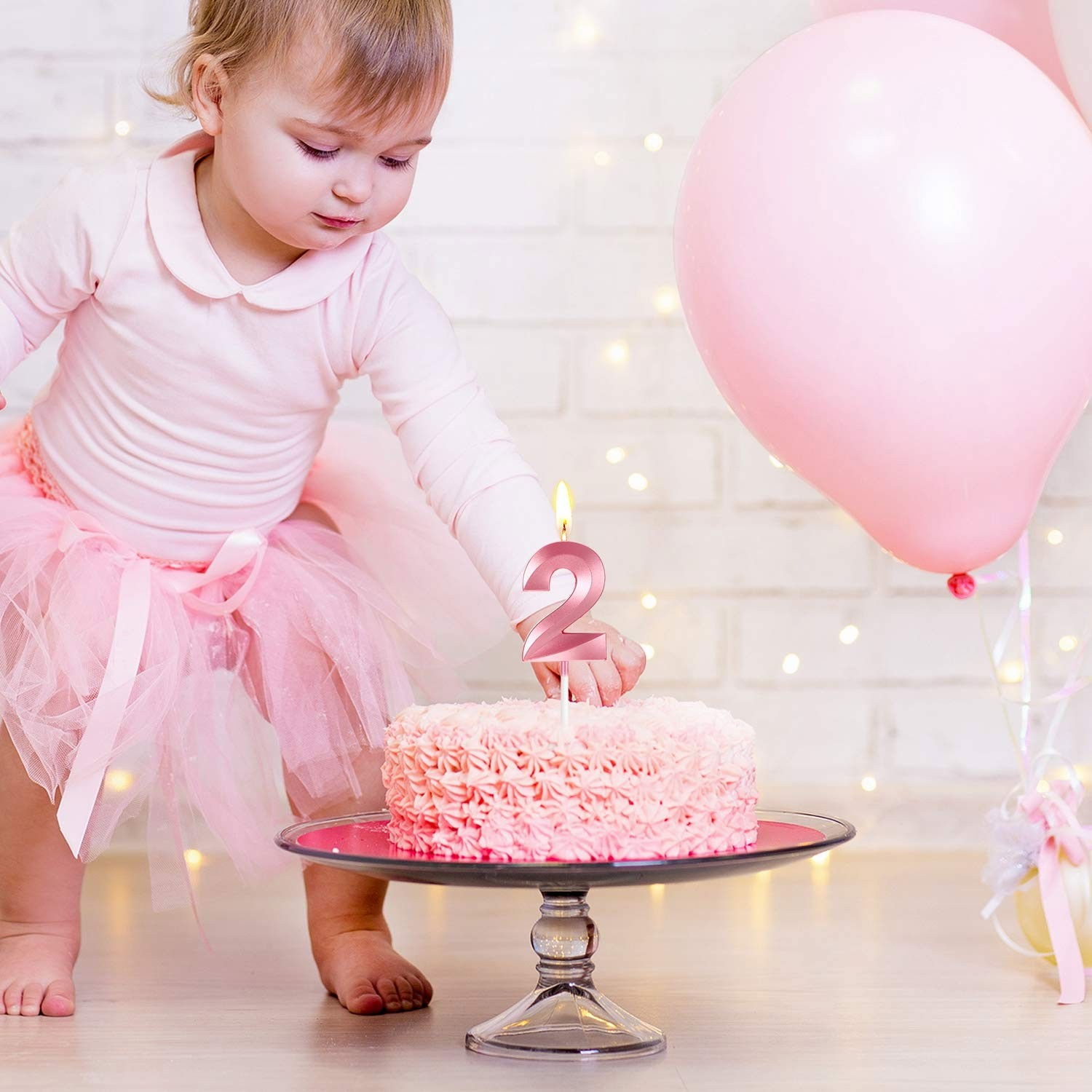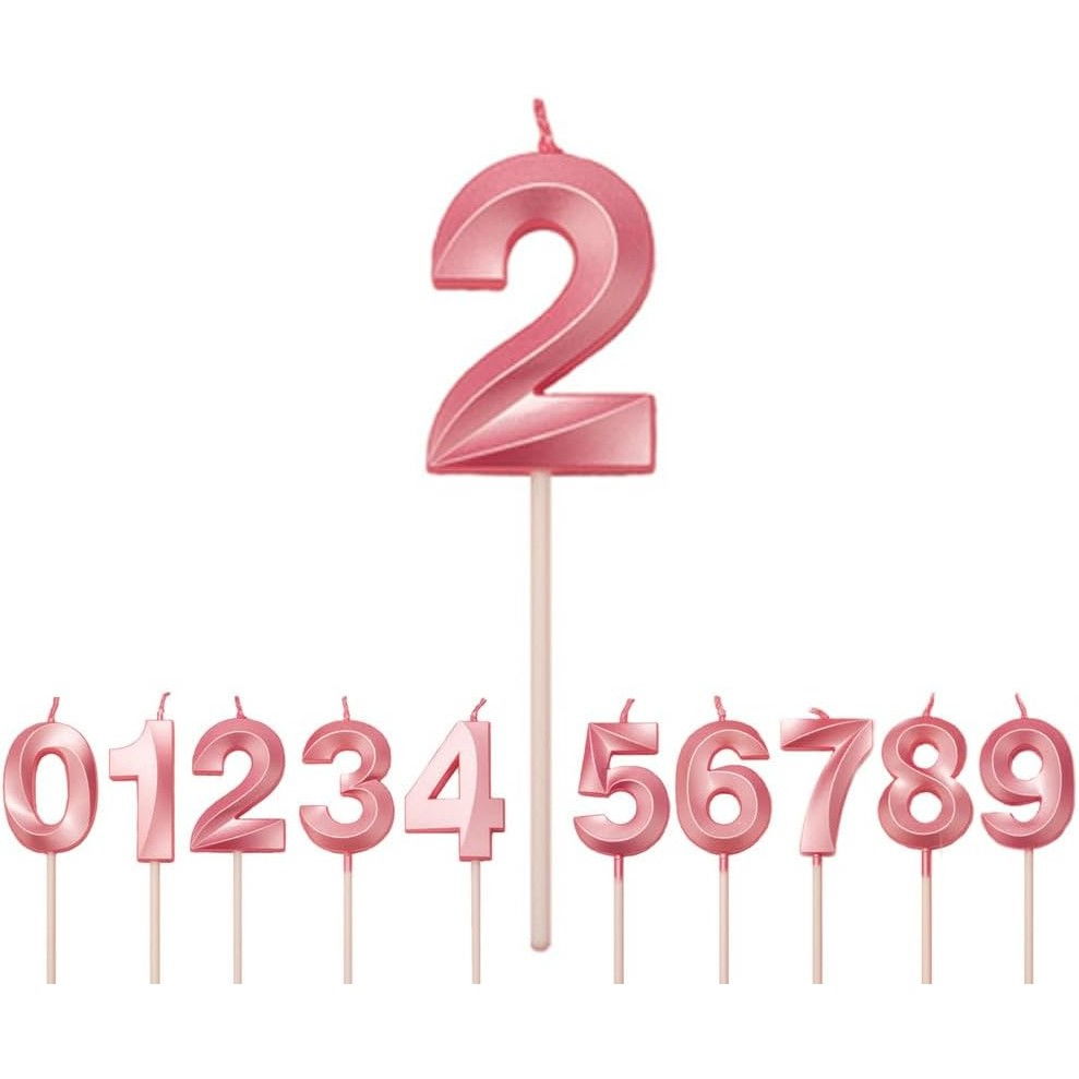Lumânare Cifră 2, Flippy®, Model Diamond, 5 x 3.4 cm, Roz