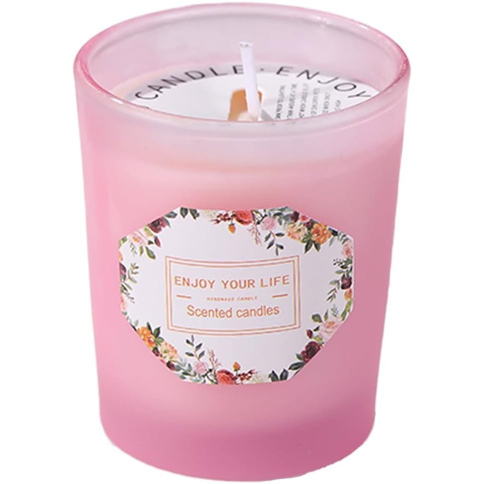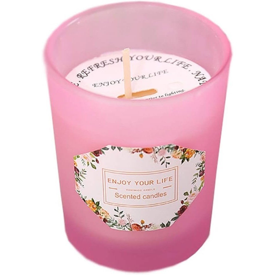 Lumanare Parfumata, Flippy, Model Pahar Roz, Aroma de Lamaie si Trandafir, din Ceara de Soia, 6.2 x 5.2 cm, Roz
