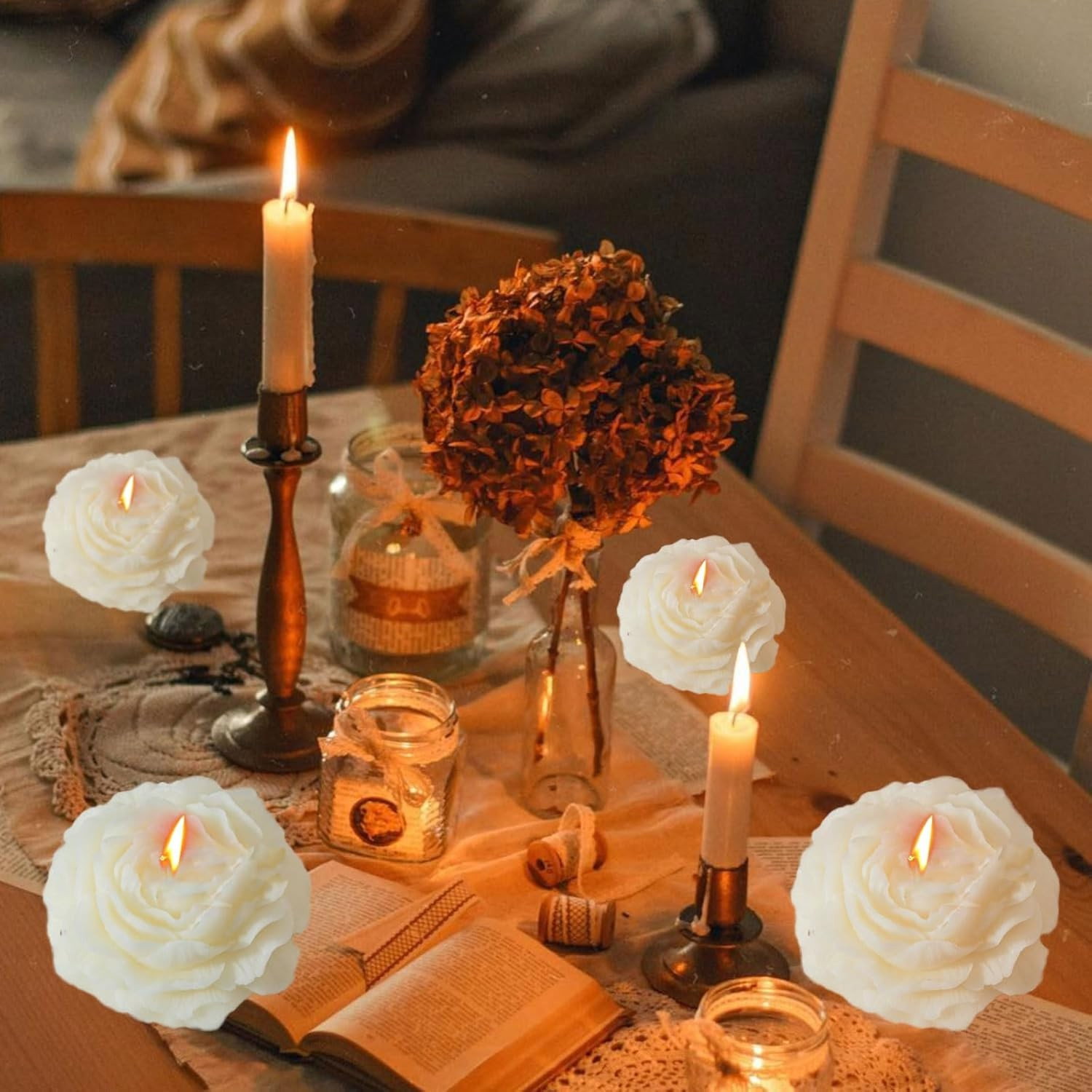 Această lumânare parfumată, cu un design delicat în formă de trandafir, adaugă un plus de eleganță și rafinament oricărui spațiu. Fabricată din ceară mixtă printr-un proces semimanual și semimecanic, oferă o ardere uniformă și o aromă plăcută, perfectă pentru relaxare și decor.