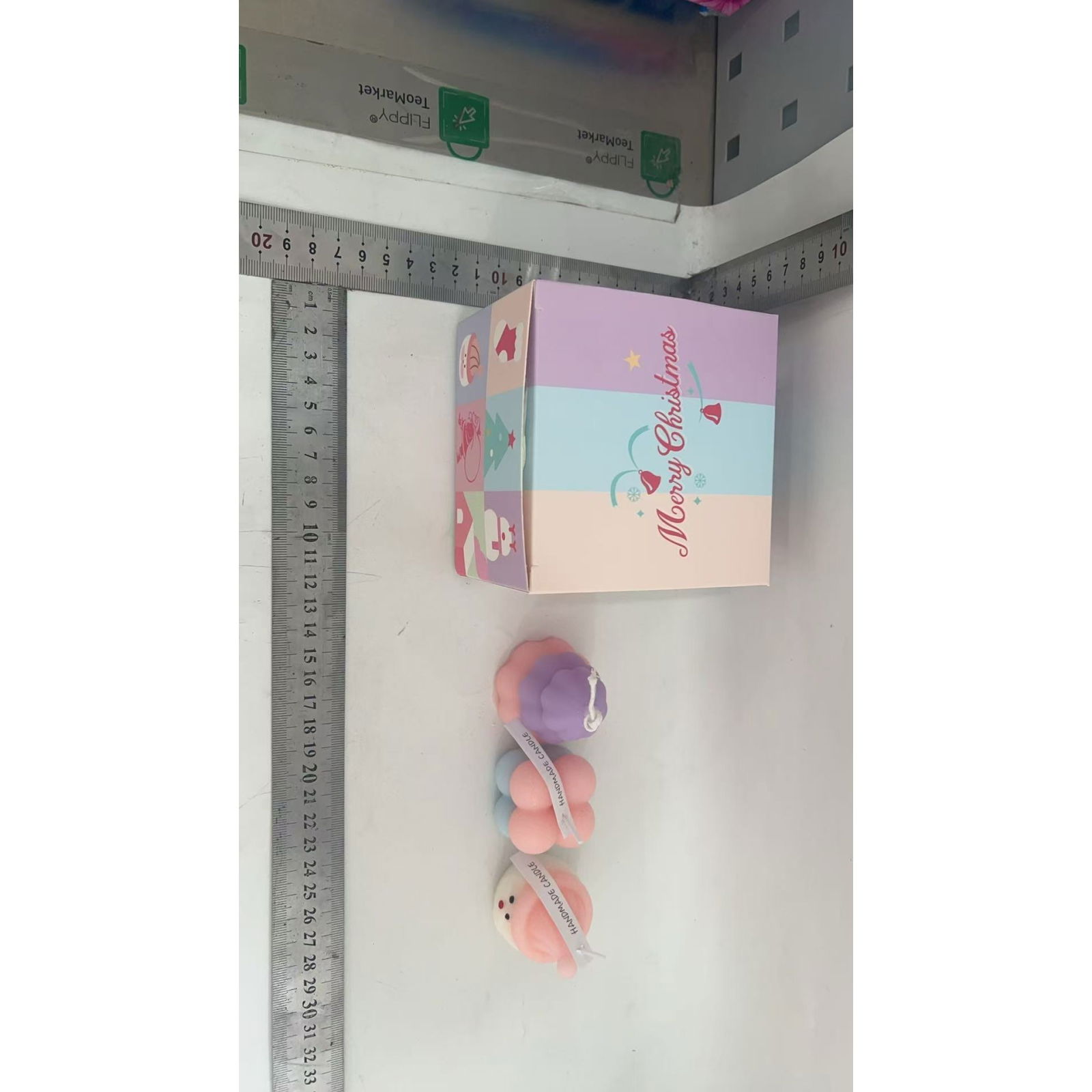 Setul contine 3 lumanari artizanale, turnate manual in forme pastelate de Craciun: