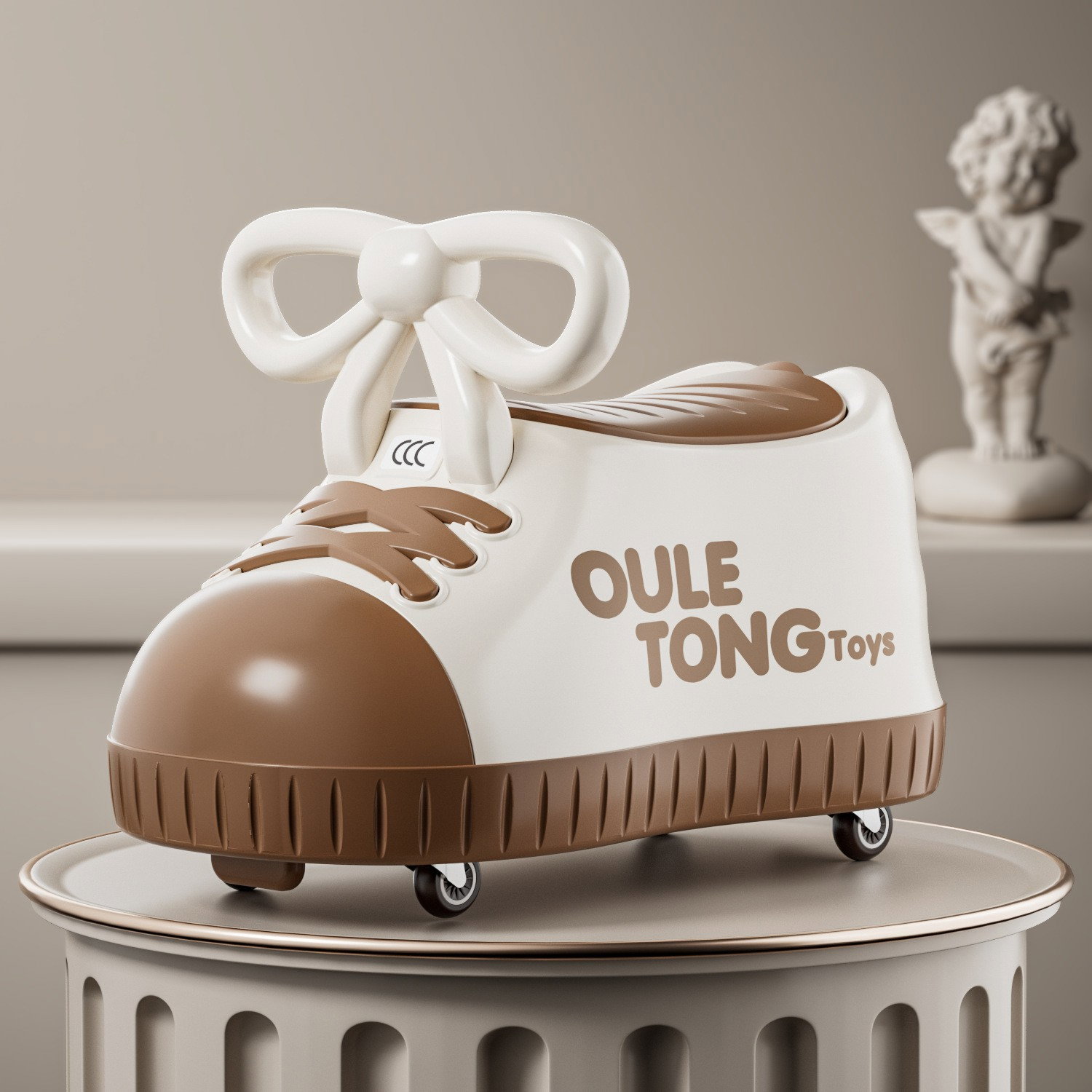 Masina pentru Copii, Flippy, Model Pantof, 4 Roti, 1-6 ani, Cutie de Depozitare, din ABS, 48 x 27 x 34 cm, Maro