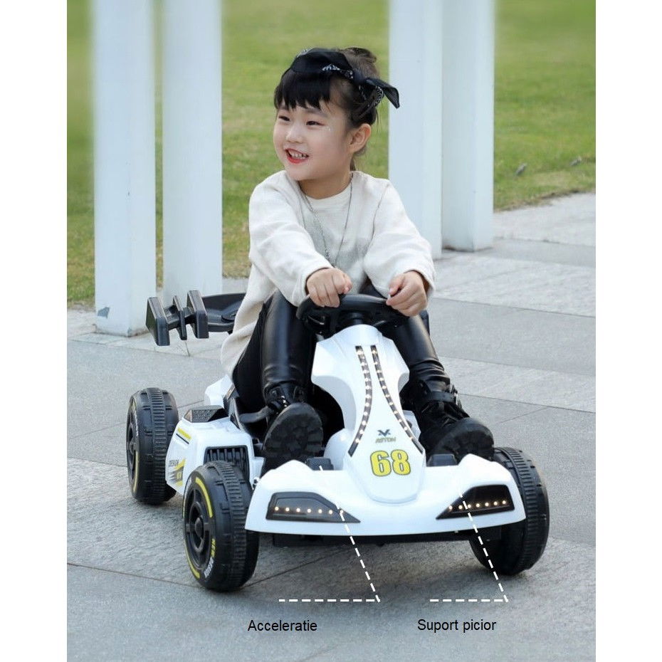 Descoperă senzația de aventură cu noul nostru Kart Electric Flippy! Proiectat pentru distracție și siguranță, acest kart oferă o experiență de conducere captivantă pentru cei mici.