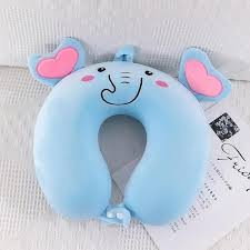 Perna de Calatorie in Forma de U, Flippy, Pentru Gat si Cap, Umplutura din Spuma cu Memorie, 30x30 cm, Model Elefant, Accesoriu de Voiaj, Birou, Masina, Sistem Prindere Capse, Albastru