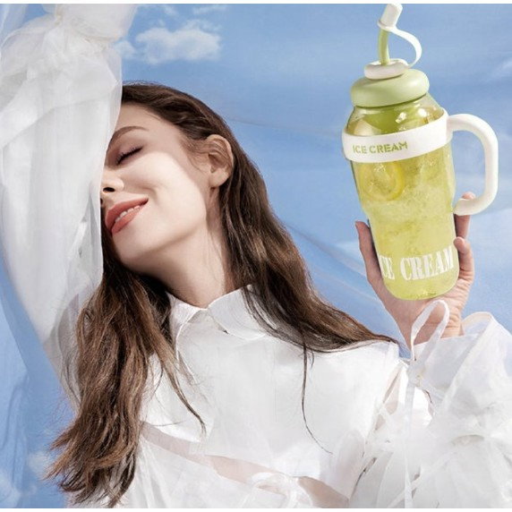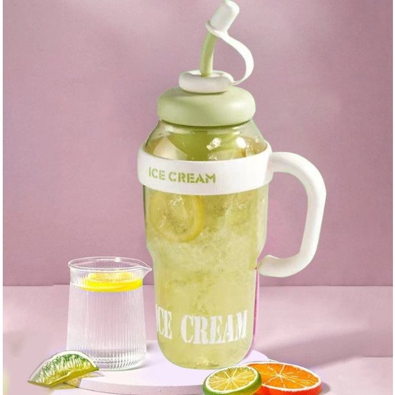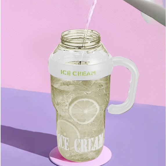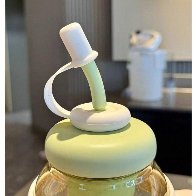 Descriere Produs: Sticlă de Apă Flippy Transparentă, 1400 ml, cu Pai și Capac Verde
