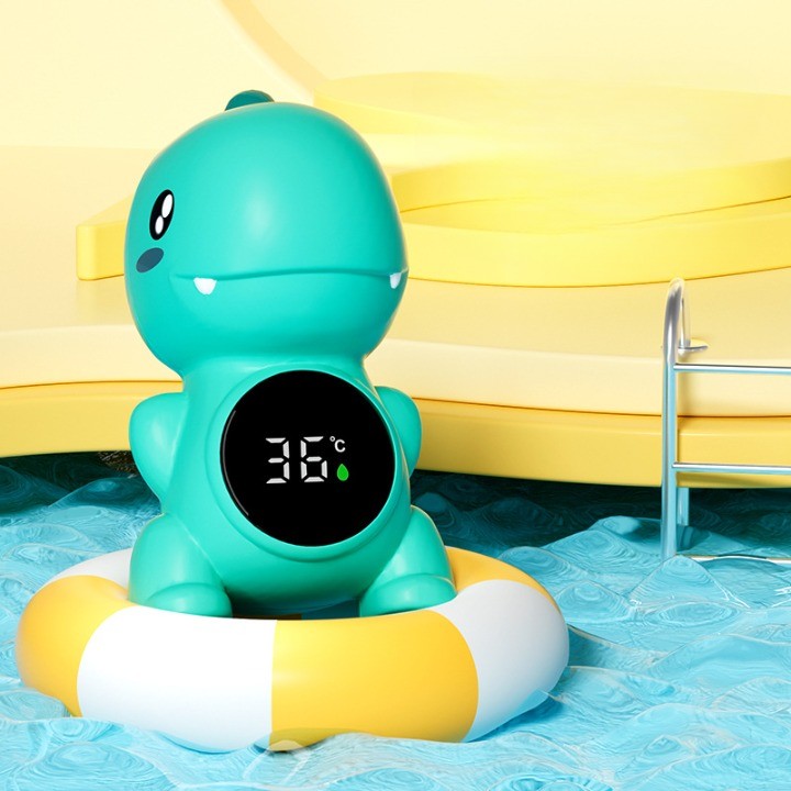 Termometru Electronic LED pentru Baie, Plutitor, Rezistent la apă, IPX7, Multifunctional, 3 Trepte de Temperatura, Model Dinozaur, 12x7cm, Verde