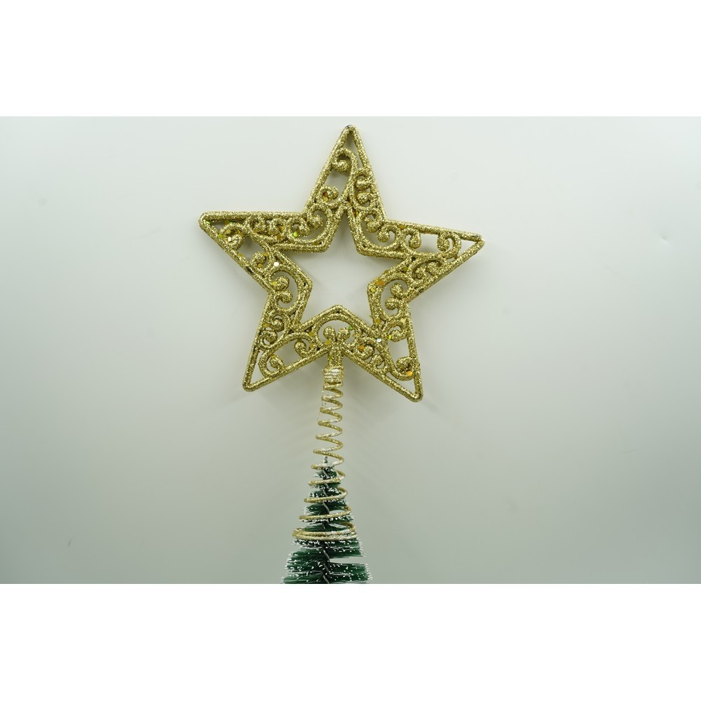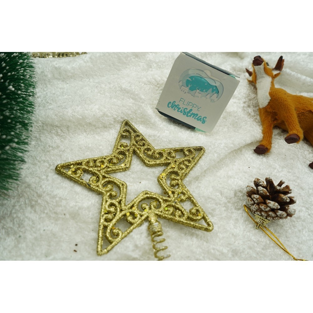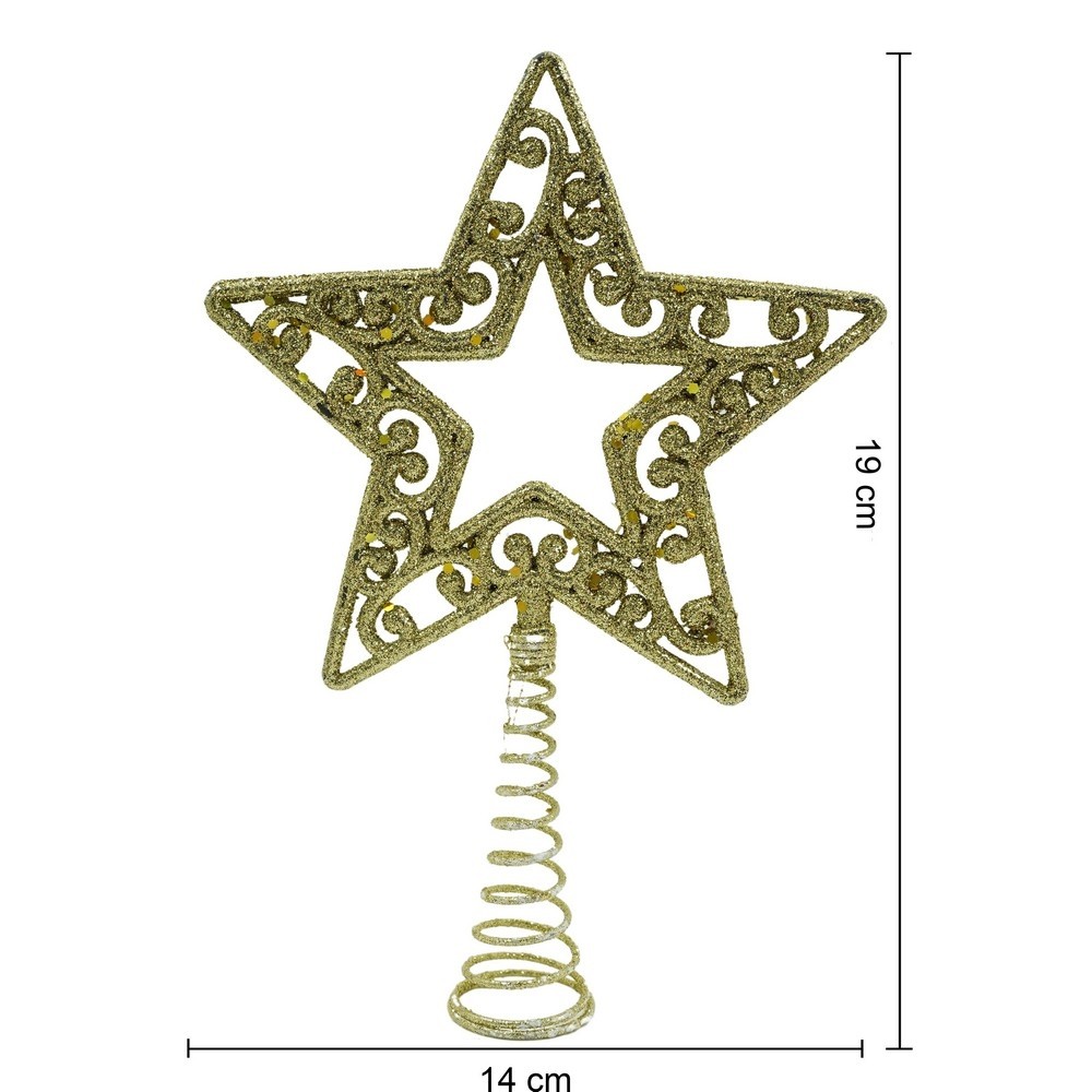 Varf decorativ de brad, Auriu, in forma de Stea, decupata in centru, din Plastic/Metal, 14 cm x 19 cm, Interior/Exterior, Flippy