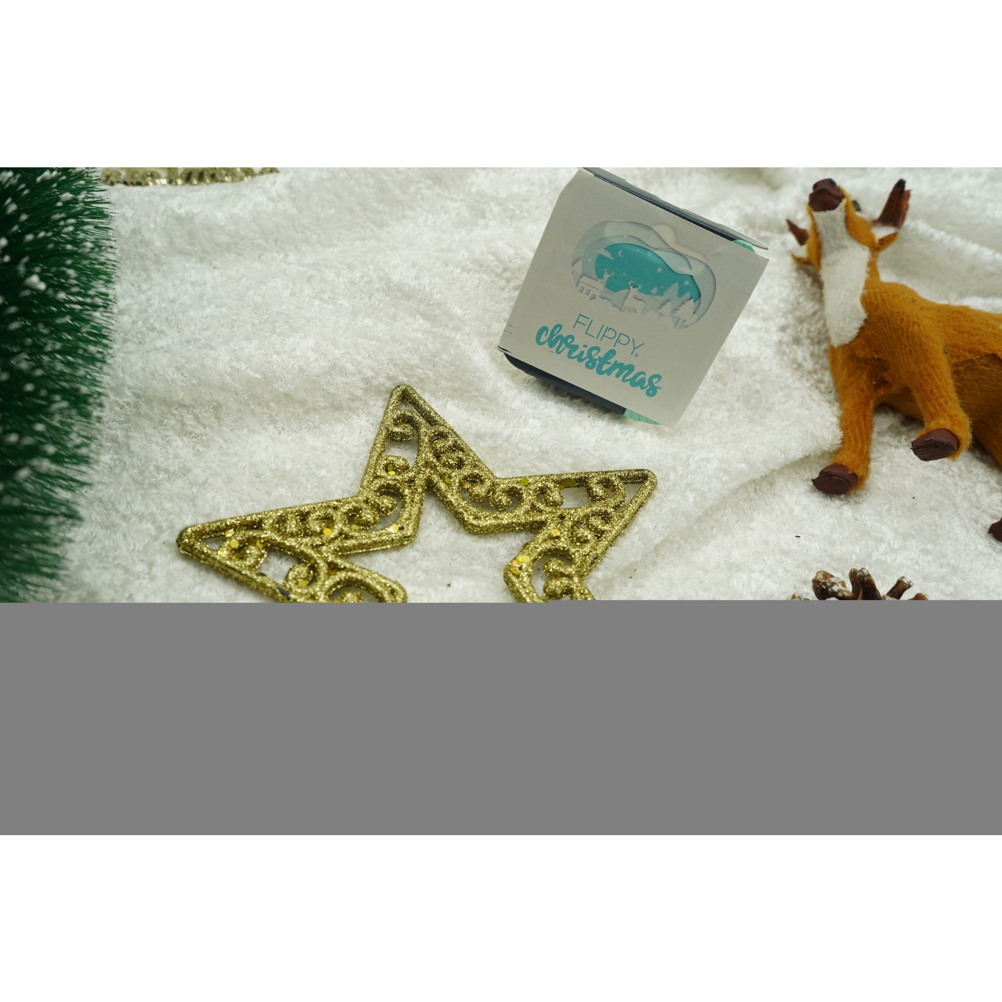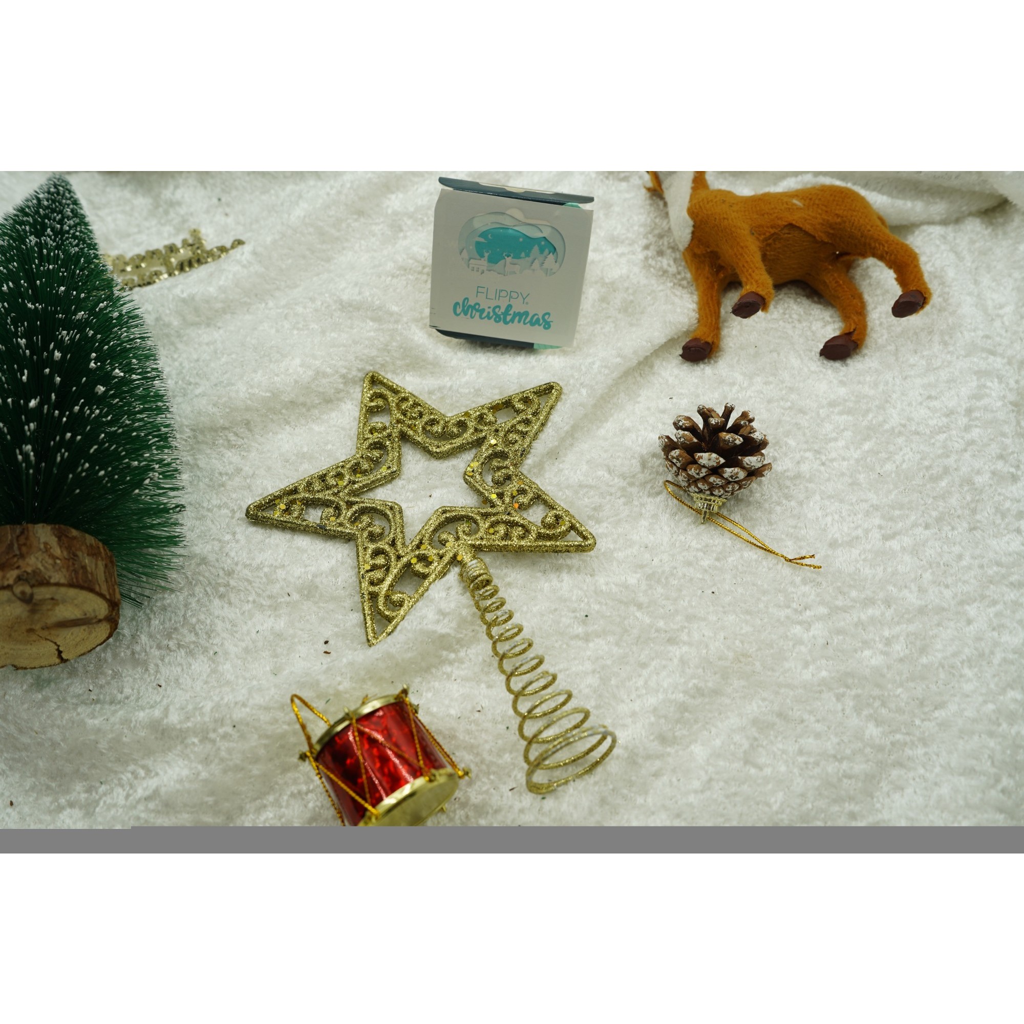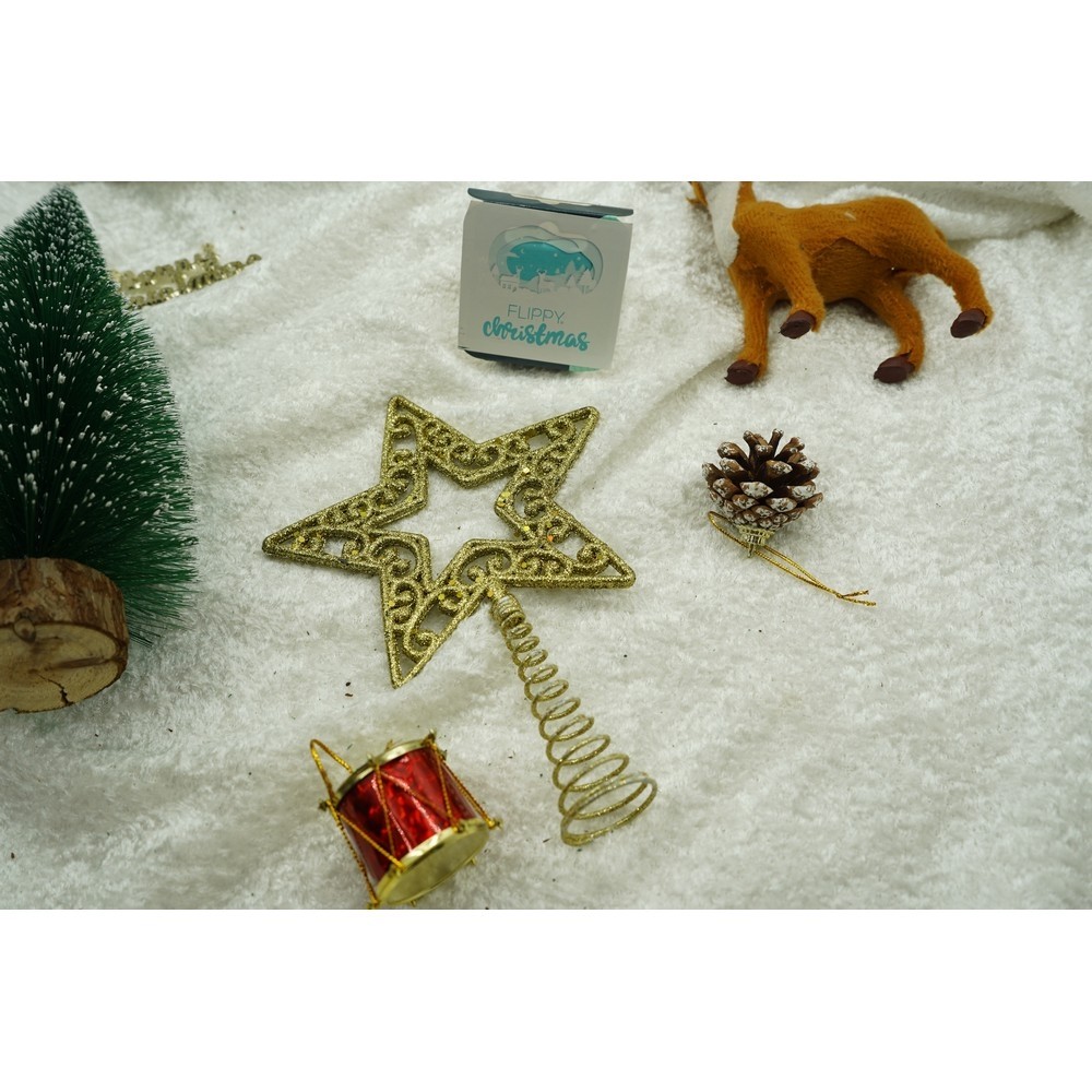 Varf decorativ de brad, Auriu, in forma de Stea, decupata in centru, din Plastic/Metal, 14 cm x 19 cm, Interior/Exterior, Flippy