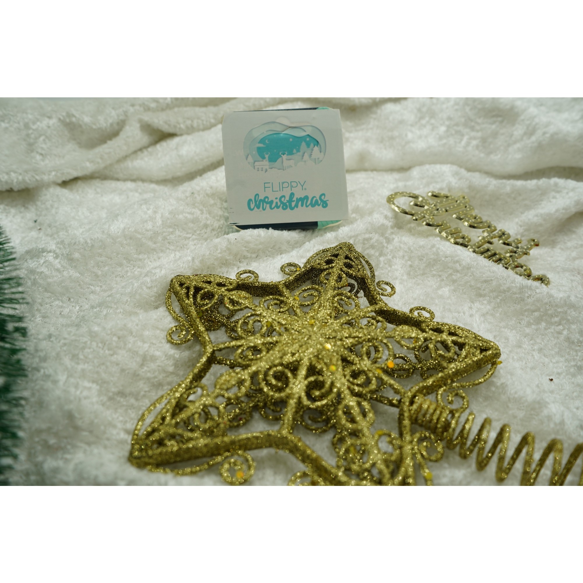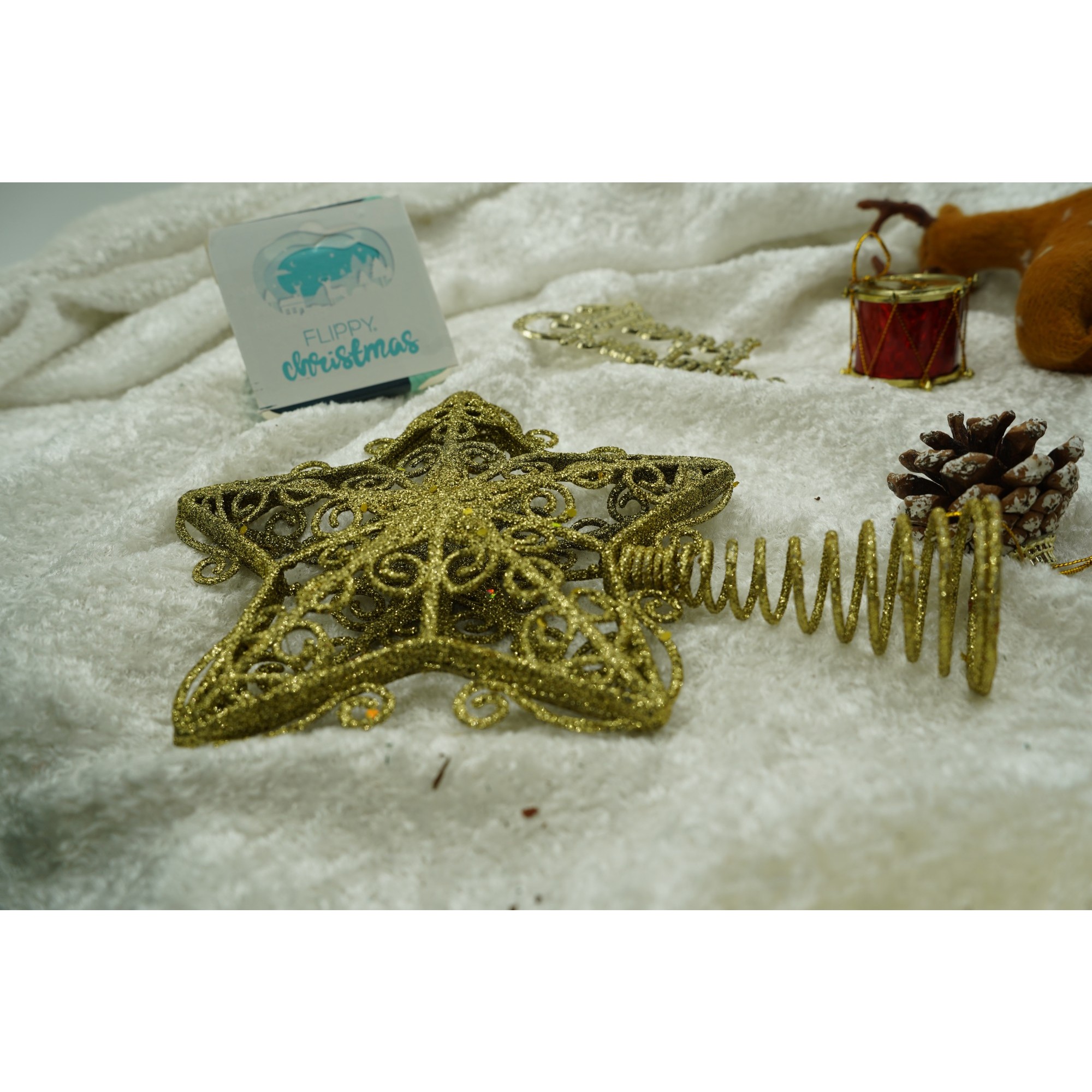 Varf decorativ de brad, Auriu, in forma de Stea, design forjat, din Plastic/Metal, 14.5 cm x 20 cm, Interior/Exterior, Flippy