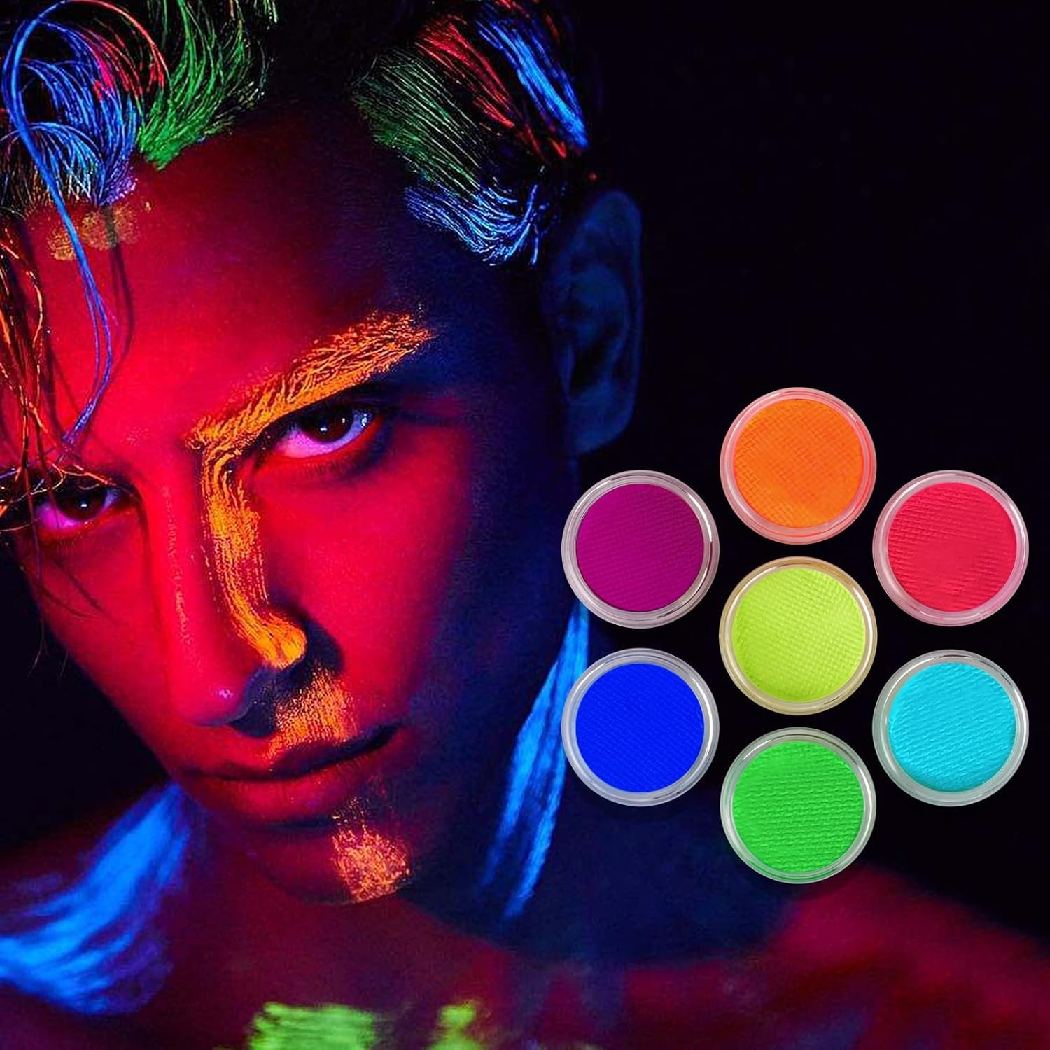 Vopseaua Flippy pentru față și corp este ideală pentru machiaj artistic, evenimente tematice, Halloween, spectacole, petreceri sau joacă creativă. Cu pigment fosforescent și formulă tip acuarelă, activată cu apă, această vopsea oferă culori intense și un efect fluorescent spectaculos, vizibil în lumină UV.